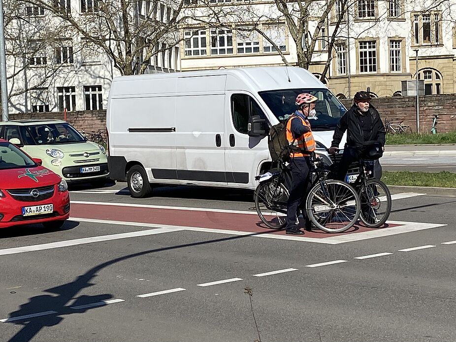 Sich in Karlsruhe aufs Rad schwingen, gemeinsam neuralgische Gefahrenpunkte in den Blick nehmen und Verbesserungen vorschlagen! Unter diesem Motto wollen wir vom RadverkehrsCheck »Mit wenig Aufwand viel erreichen«. Wichtig ist, die Verantwortlichen in Karlsruhe immer wieder für die Belange der Radfahrenden zu sensibilisieren. Wir haben mit dem Vor-Ort-Radeln ein partizipatives Verfahren initiiert, wobei wir auch Anregungen aus der Bevölkerung aufnehmen, mit dem Ziel, bessere Bedingungen für die Radelnden in Karlsruhe zu schaffen. Ob Konfliktsituationen mit Zufußgehenden, wenig Sicherheit für radelnde Kinder, problematische Einmündungen, Kreuzungen, an denen die Radfahrenden nicht wissen, wie sie einfach drüber kommen, Behinderung und Gefährdung durch parkende Autos, einfach endende Radstreifen, kaum Durchgängigkeit von Radwegen, ärgerliche Ampelschaltungen, nicht sinnige Radwegebenutzungspflichten oder fehlende Bordsteinabsenkungen: Die Mängelliste des ADFC ist lang.