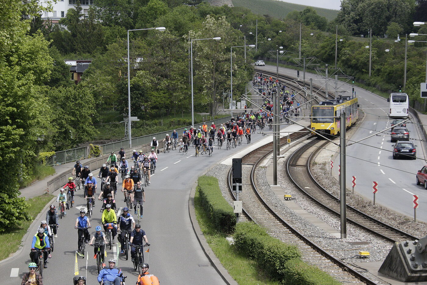 So sieht es heute noch aus: Tag für Tag müssen wir uns die wenigen Fahrradstraßen mit Autofahrenden teilen. Große Straßen wie die B10 und B14 sind dagegen dem Autoverkehr vorbehalten. Aber einmal im Jahr demonstrieren wir genau dort für mehr Platz für uns Radfahrende. Wir erleben, wie unsere Mobilität aussehen könnte, wenn sie sich an den Menschen orientiert – und nicht nur am Auto.